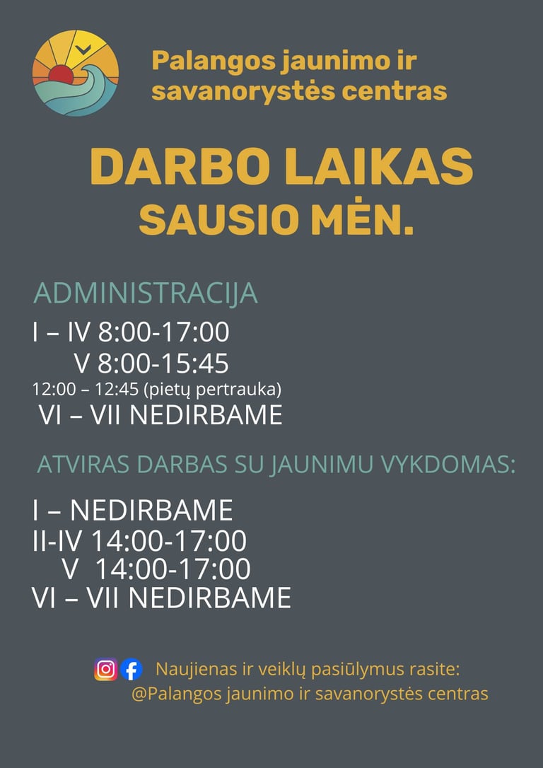 Palangos jaunimo ir savanorystės centro darbo laikas: