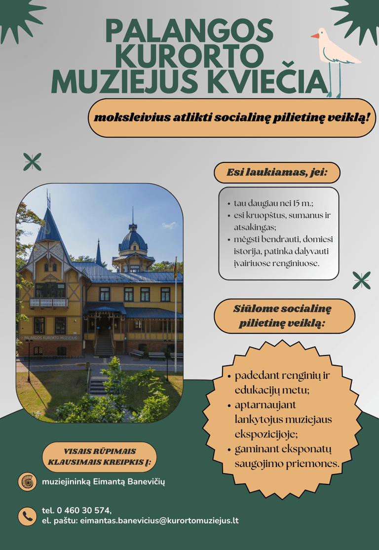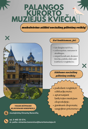 Kontaktai: Palangos viešosios bibliotekos direktorės pavaduotoja Aura Banevičienė, tel. +370 460 30621, el. p. aura.baneviciene@palangamvb.lt